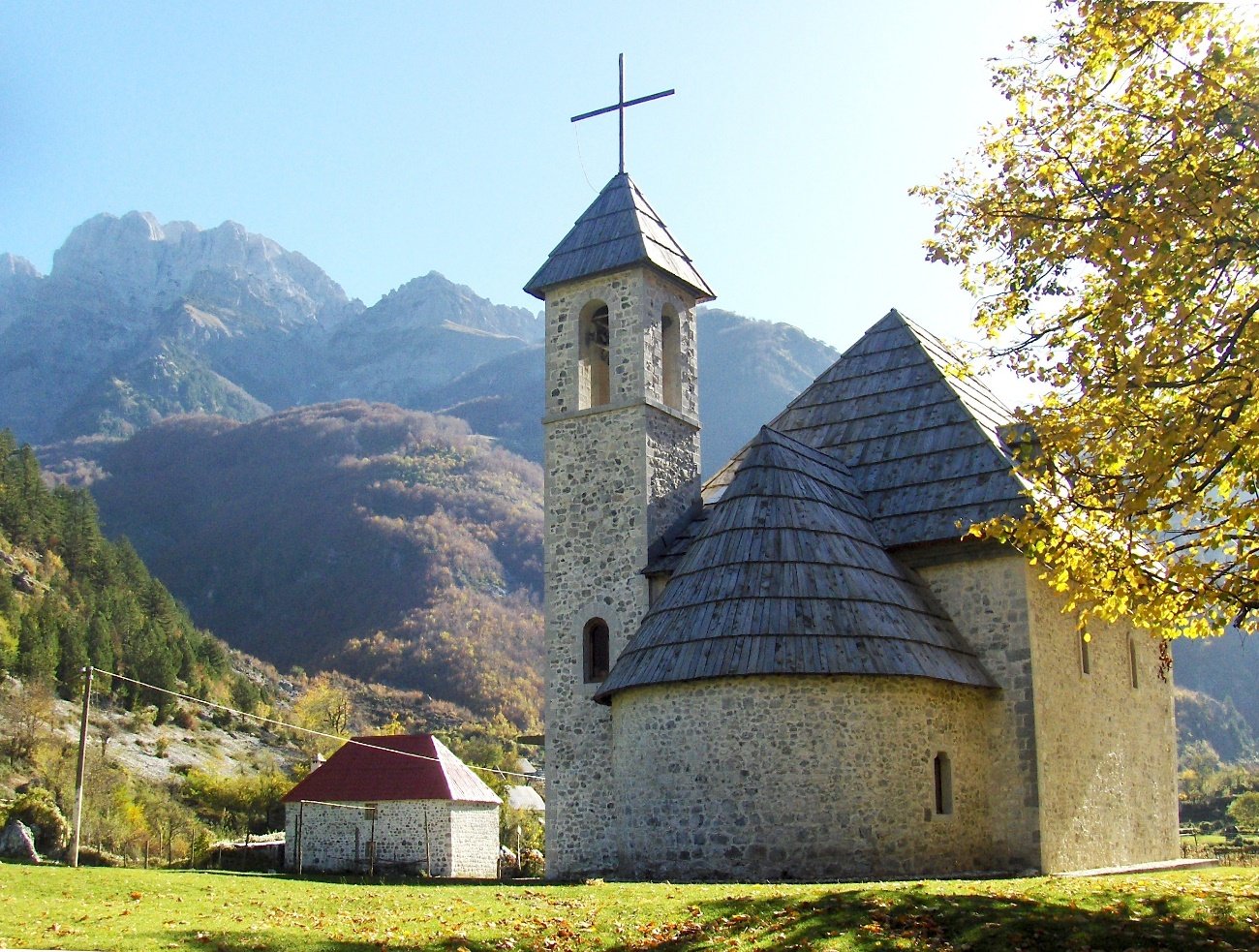 Iglesia de Theth, en los Alpes albaneses. Fotografía de Peter H. Wikimedia.