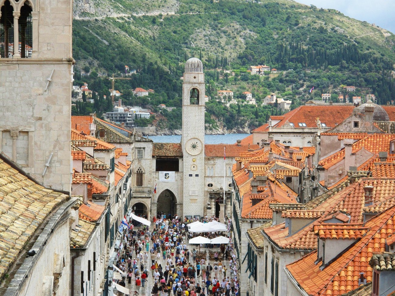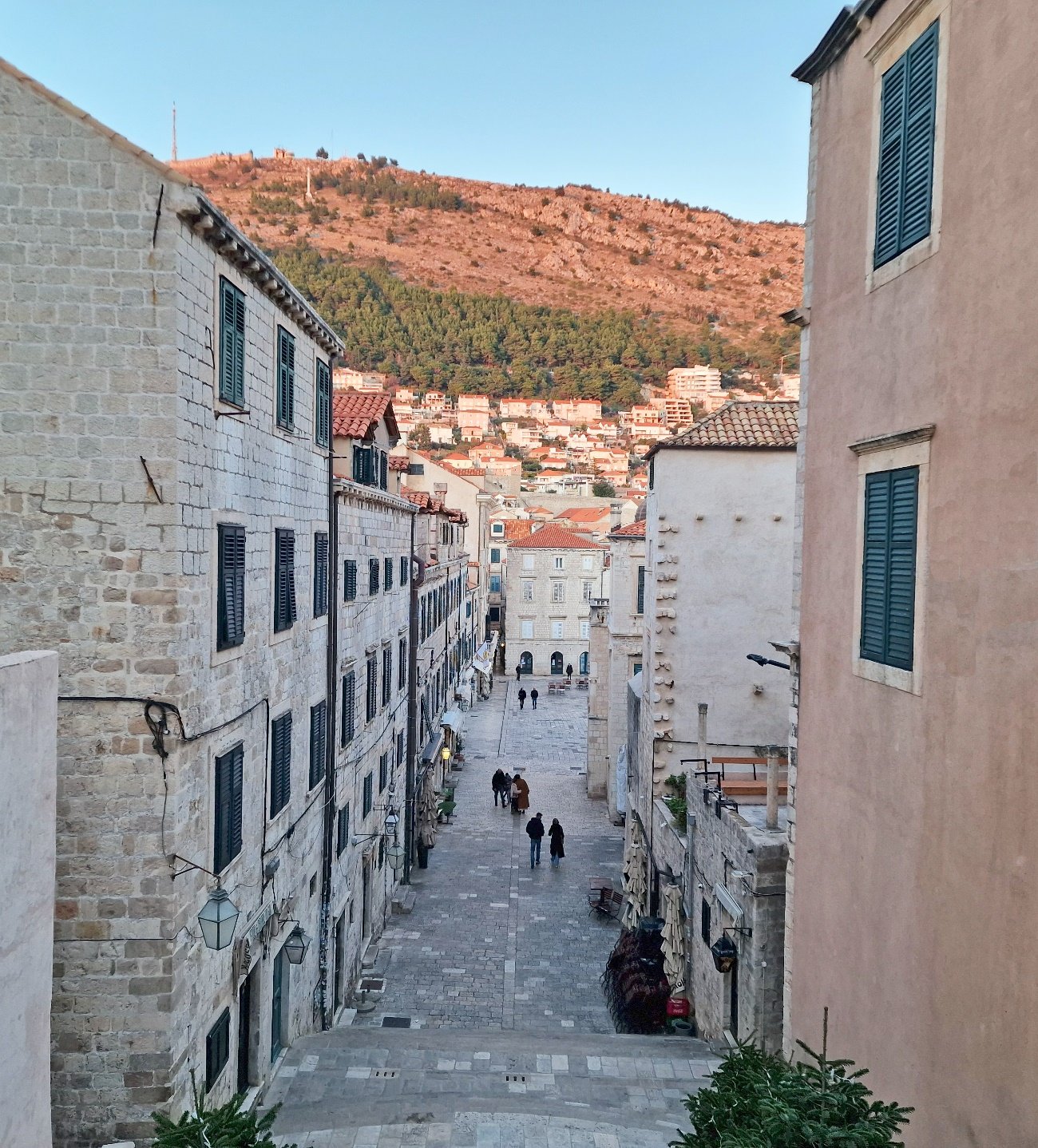 Pavimentada con piedra caliza pulida, esta calle atraviesa la ciudad de oeste a este, conectando la Puerta de Pile y con la Torre del Reloj.