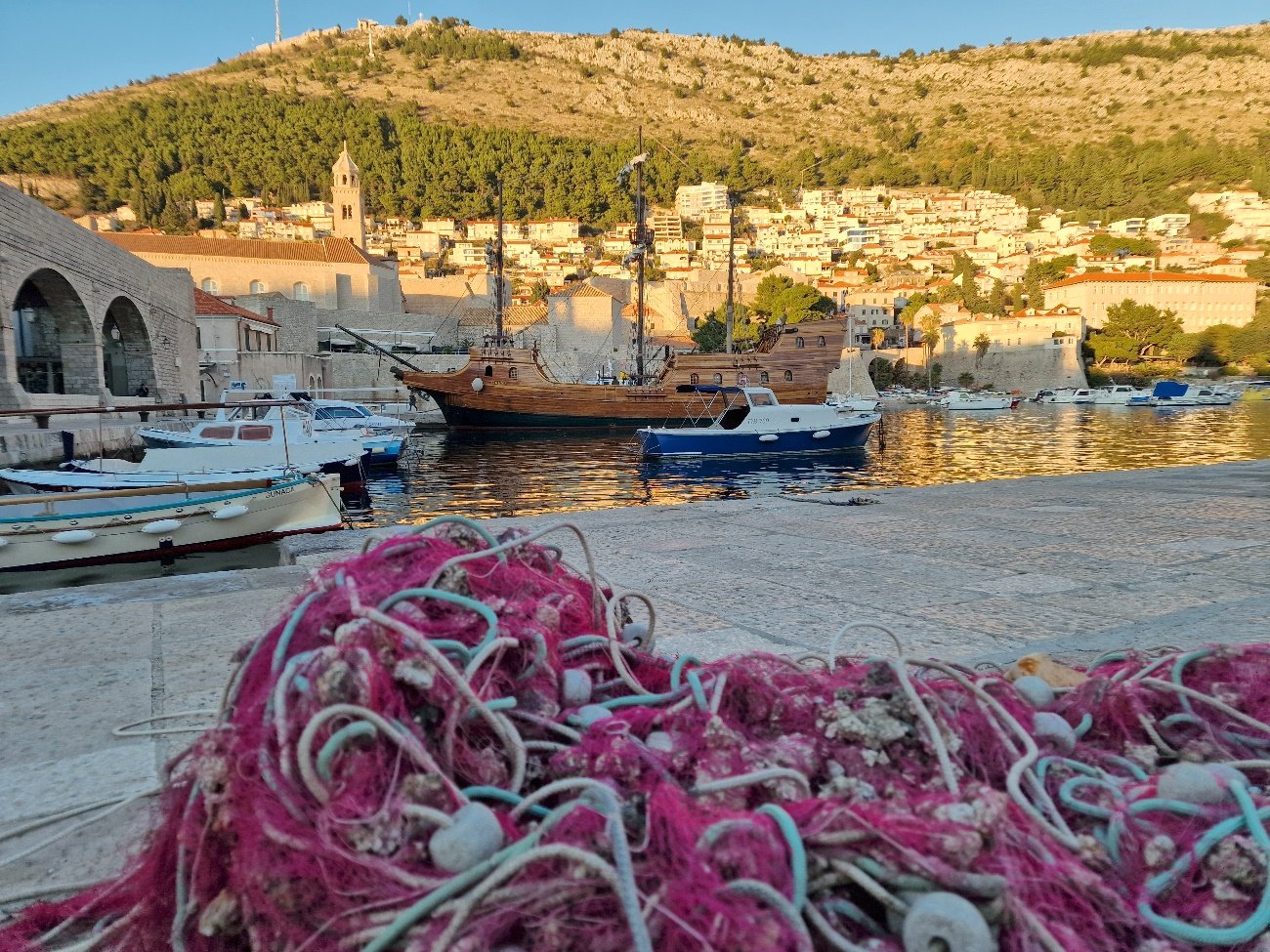 Lo que antiguamente fue el motor económico de la ciudad, hoy se ha convertido en un lugar pintoresco donde pequeñas embarcaciones descansan frente a murallas doradas por el sol, recordando la herencia marinera que dio prosperidad y prestigio a Dubrovnik.