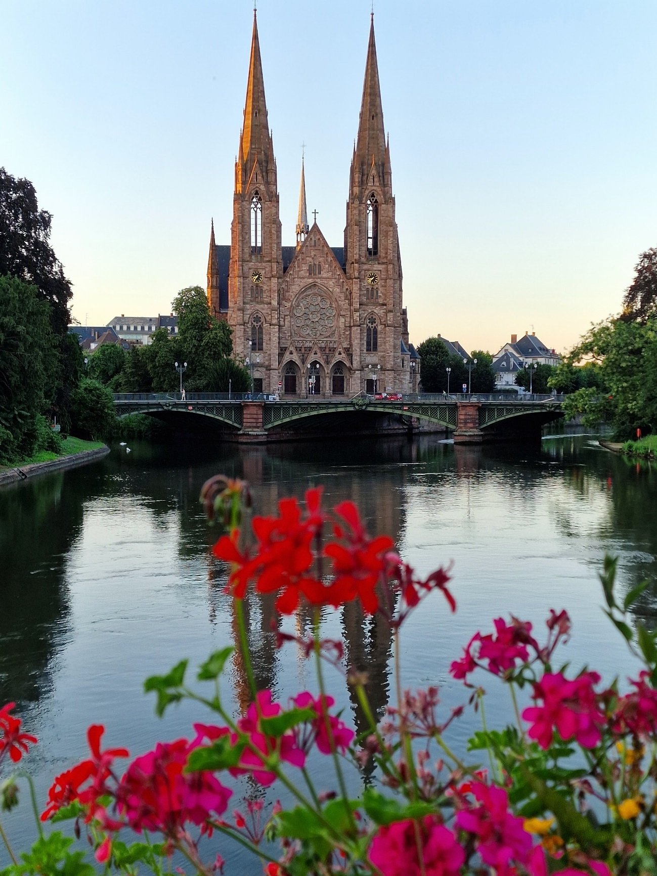 Se encuentra en un entorno precioso, justo donde el río Ill se divide en dos brazos, lo que hace que la iglesia se refleje en el agua y regale una de las postales más fotogénicas de Estrasburgo.