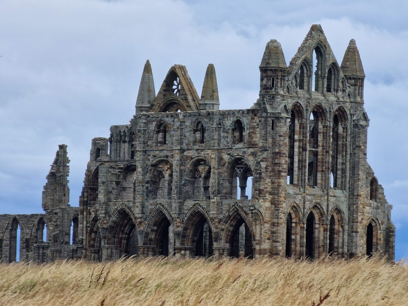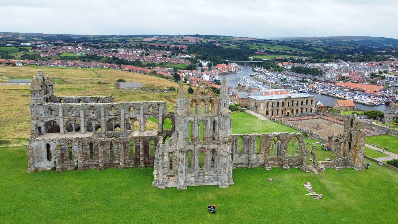 El gran símbolo de Whitby es la Abadía de Whitby, cuyas ruinas se alzan sobre un acantilado con vistas al pueblo y al mar, creando una imagen espectacular.