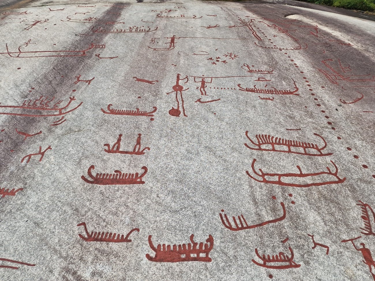 Se trata de más de 1.500 grabados rupestres en roca realizados hace unos 3.000 años, durante la Edad del Bronce, donde aparecen representados, entre otras cosas, barcos, figuras humanas, animales y escenas de caza.