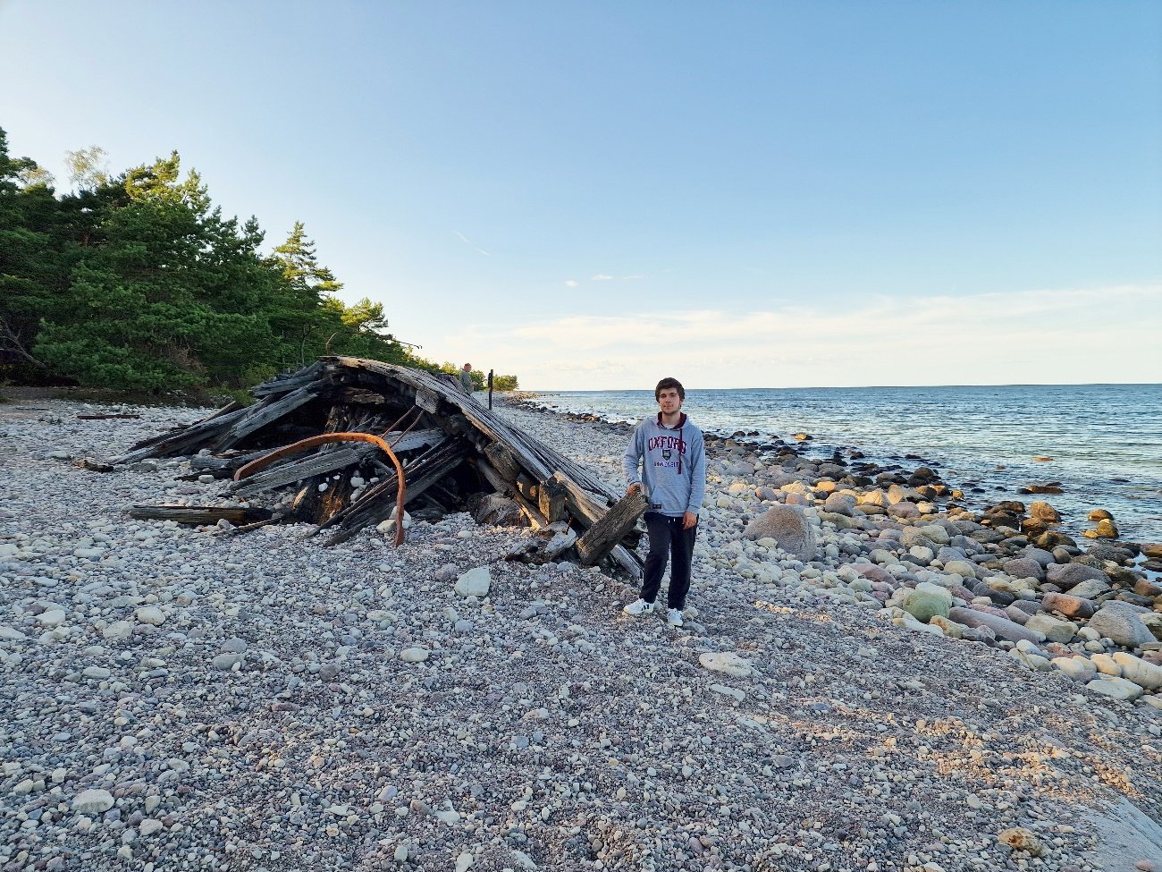 Se trata de los restos del naufragio del barco Swiks, visibles en una playa de guijarros, de la costa de Trollskogen.