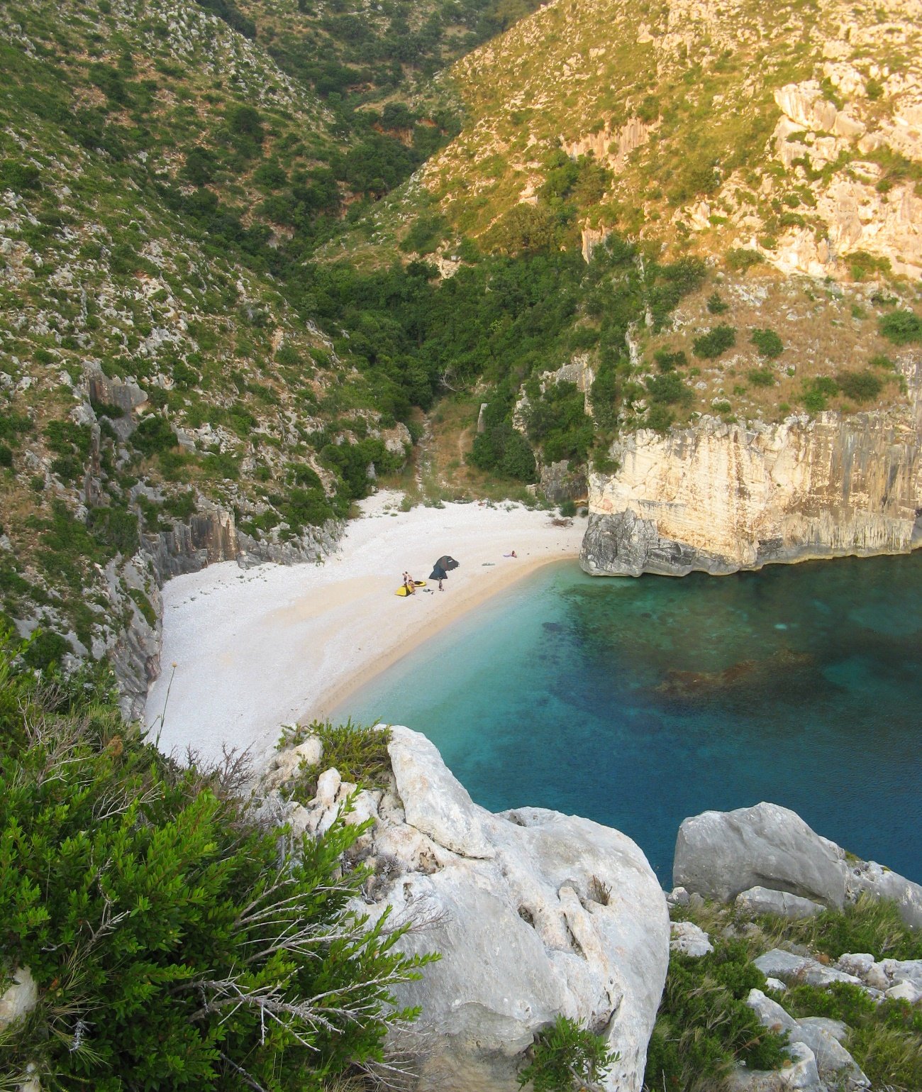 Gjipe es una de las playas más espectaculares de Albania. Es un paraíso oculto, una playa escondida en el fondo de un impresionante cañón de piedra caliza de 800 metros. A ambos lados, las paredes del cañón se elevan 150 metros.