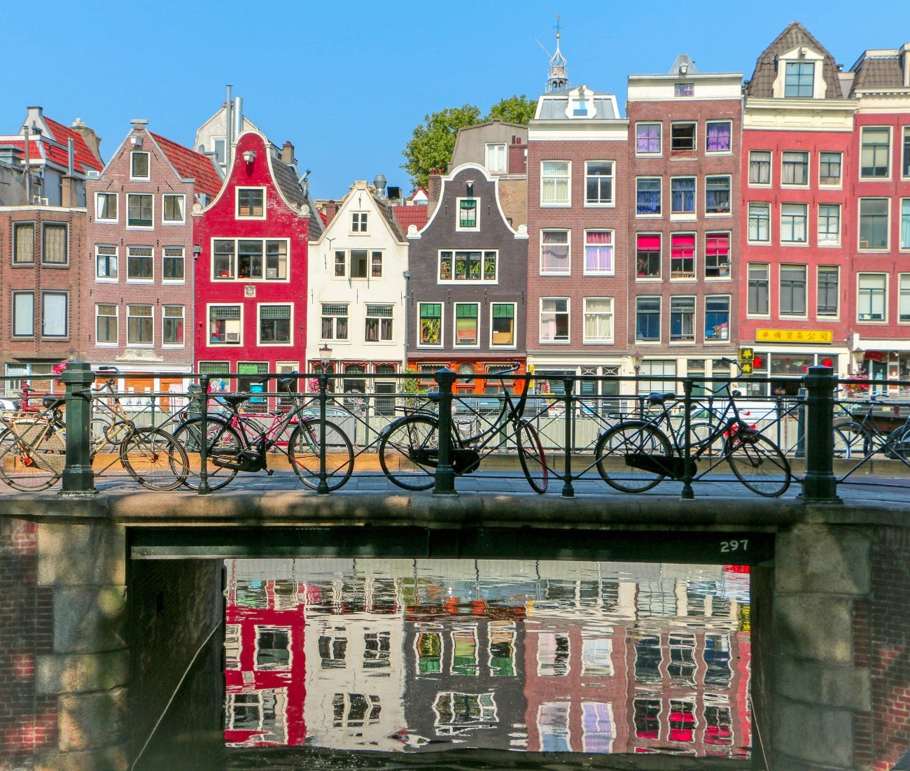 Ámsterdam es una ciudad vibrante, creativa, donde la vida urbana está envuelta en su característico paisaje con canales y puentes de hierro adornados con flores.