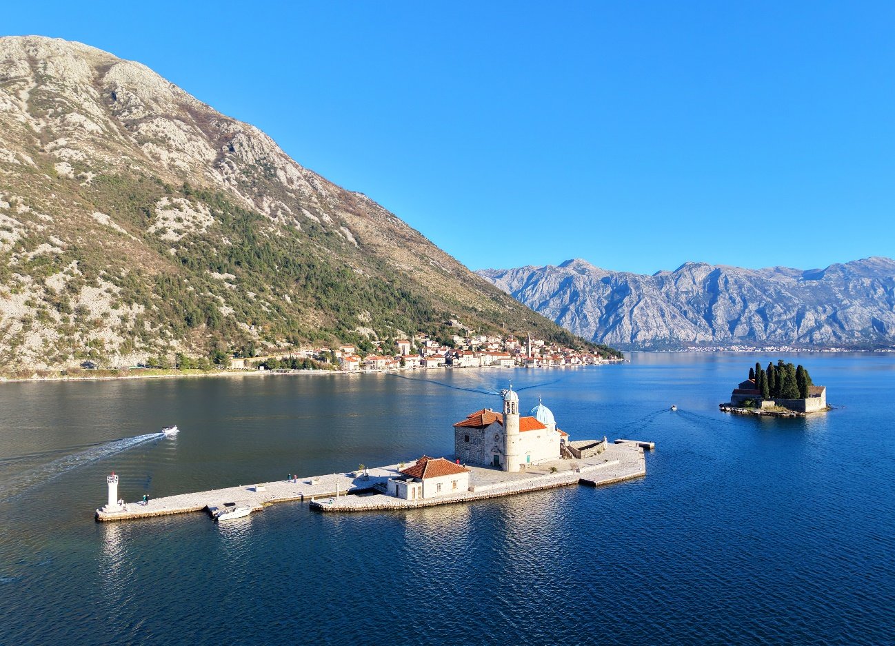 Frente a sus aguas tranquilas emergen dos pequeñas islas icónicas, que se han convertido no solo en el símbolo del Perast, sino también en la estampa más famosa de Montenegro.