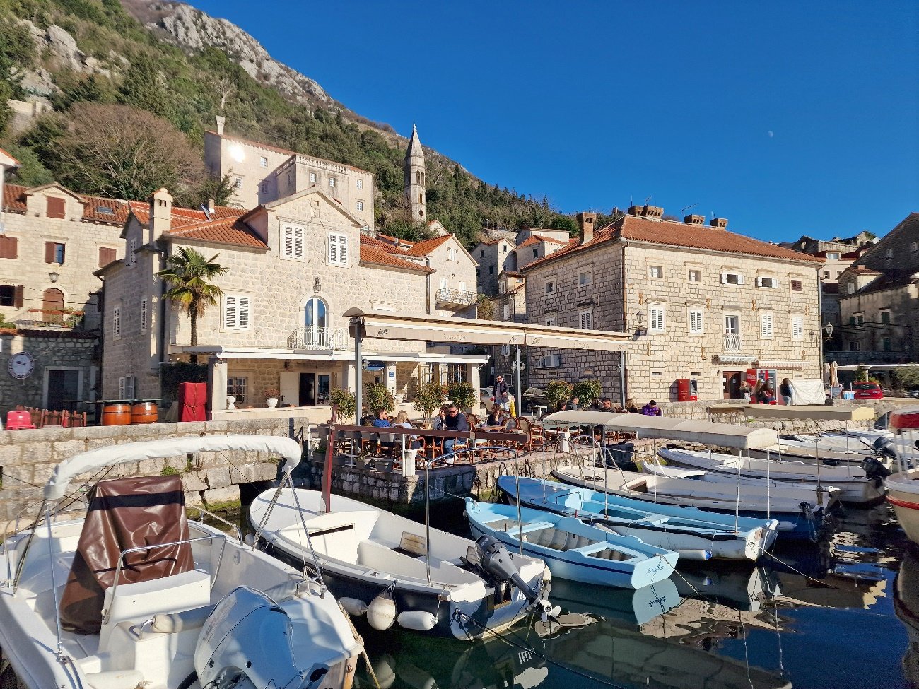 Ubicado en un paraje de belleza exuberante, la bahía de Kotor, y rodeado de montañas que caen directamente al mar, este pequeño y tranquilo pueblo parece haberse quedado detenido en el tiempo.